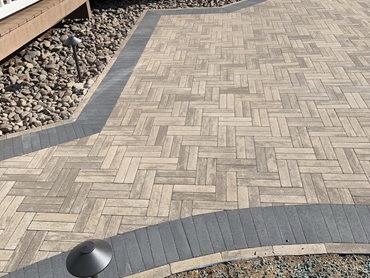 Pavers are installed with precision, followed by joint sanding and edge restraint installation.
